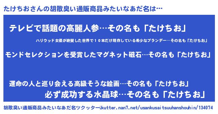 | 欧米人風あだ名 | 『ダニエルたけちお』『マイケルたけちお』 |