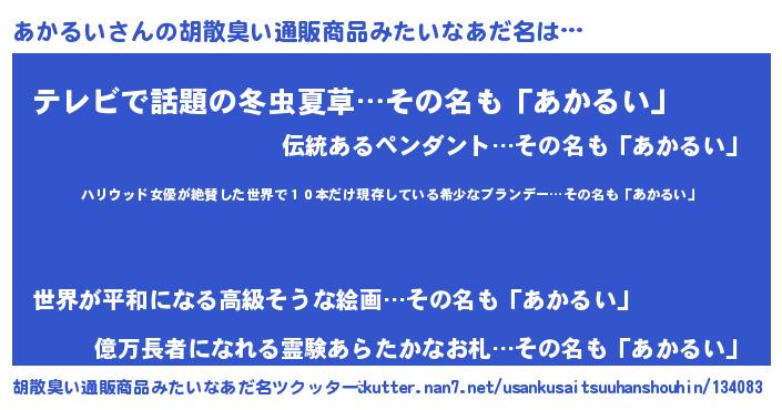 | 意味不明あだ名 | 『住所不定無職あかるい(91歳)』 |