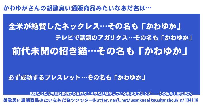 | 意味不明あだ名 | 『永久保存かわゆか』『自称かわゆか』 |