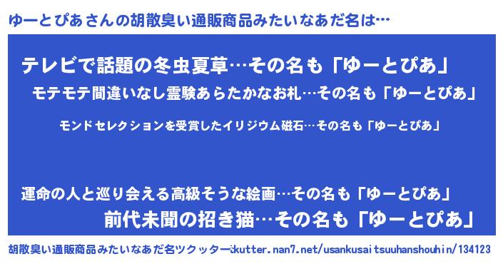 | ヘコむあだ名 | 『ゆーとぴあ(笑)』『ゆーふぇ~』 |