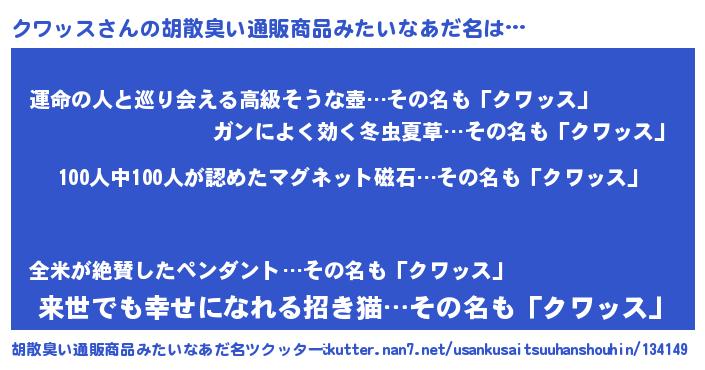 | ヒーロー風カッコイイあだ名 | 『友情の使者クワッス』『ネオクワッス』 |