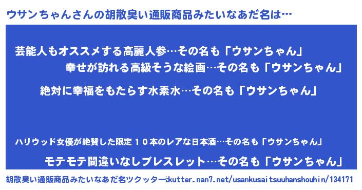 | ヘコむあだ名 | 『ウサンちゃん(震え声)』『ウサふぇ~』 |