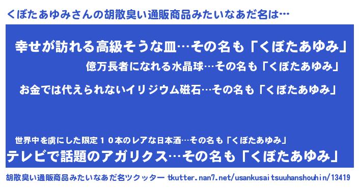 | 伝説のあだ名 | 『魔王と互角に渡り合う占い師くぼたあゆみ』 |