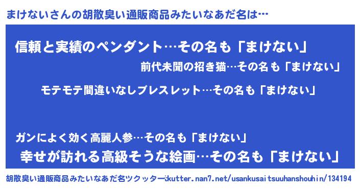 まけないさんの胡散臭い通販商品みたいなあだ名をツクッター!