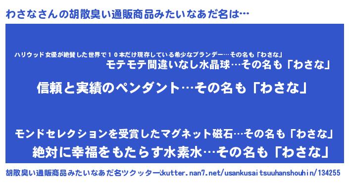 | ヘコむあだ名 | 『わさぷりん』『わさな(震え声)』 |