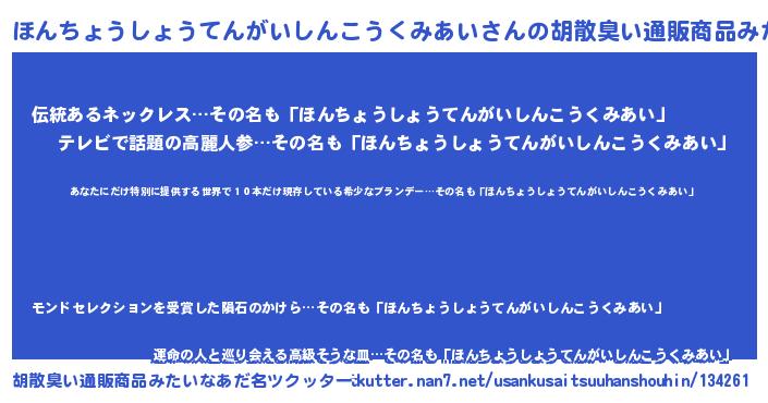 | 意味不明あだ名 | 『住所不定無職ほんちょうしょうてんがいしんこうくみあい(93歳)』 |