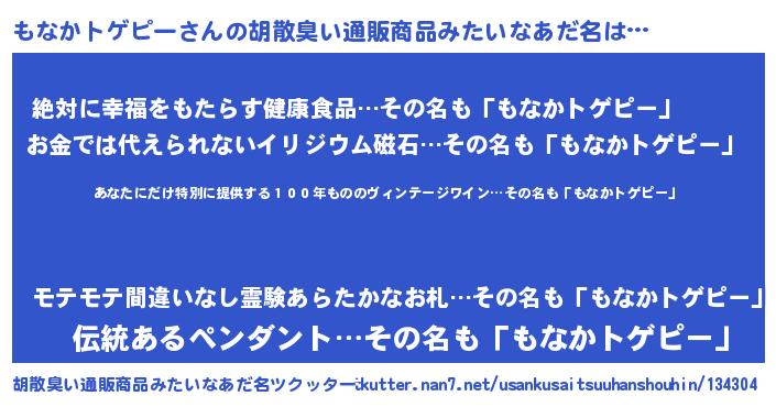 | 男性向けラノベタイトル風あだ名 | 『この素晴らしい世界にもなかトゲピーを!』 |