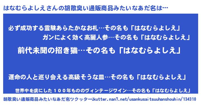 | ヘコむあだ名 | 『はなむらよしえ(笑)』『はなもー』 |