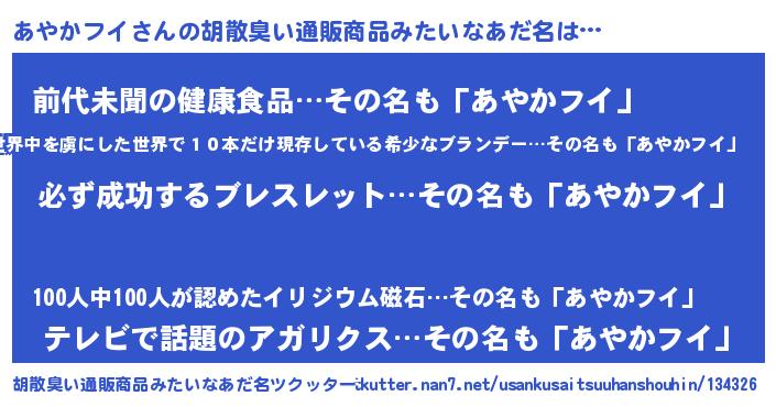 | 肩書あだ名 | 『あやかフイ大佐』『あやかフイ機長』 |