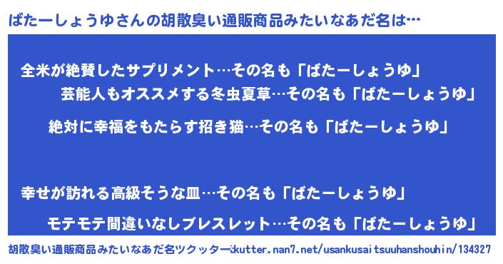 | ヘコむあだ名 | 『ばたーしょうゆ(笑)』『ばたを』 |
