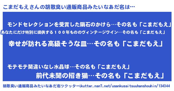 | 意味不明あだ名 | 『こまだもえフォーエバー』 |