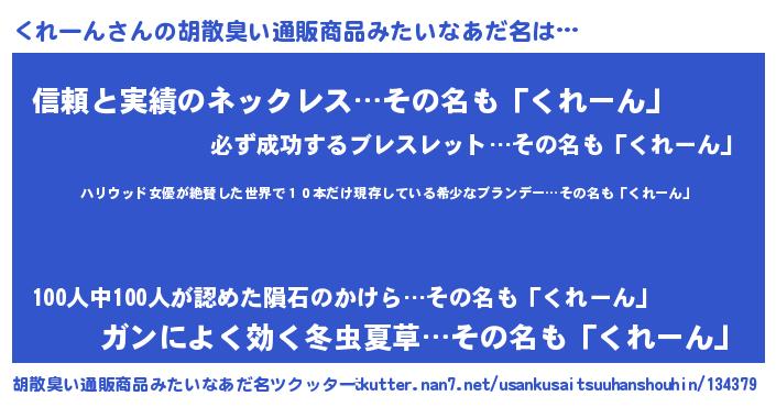 | 意味不明あだ名 | 『エリンギ科くれーん属』『自称くれーん』 |