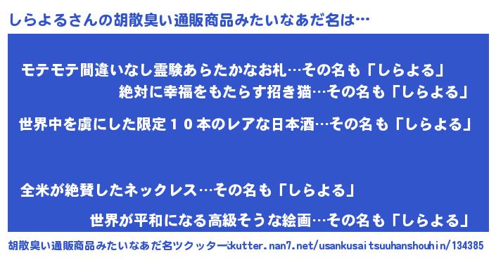 | 意味不明あだ名 | 『住所不定無職しらよる(68歳)』 |