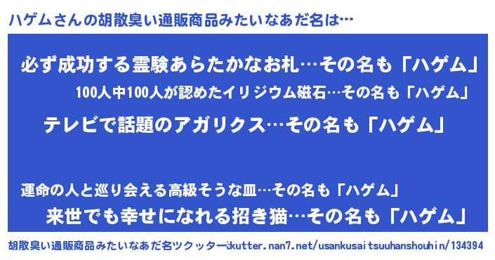 | ヘコむあだ名 | 『ハゲふぇ~』『ハゲム(小並感)』 |