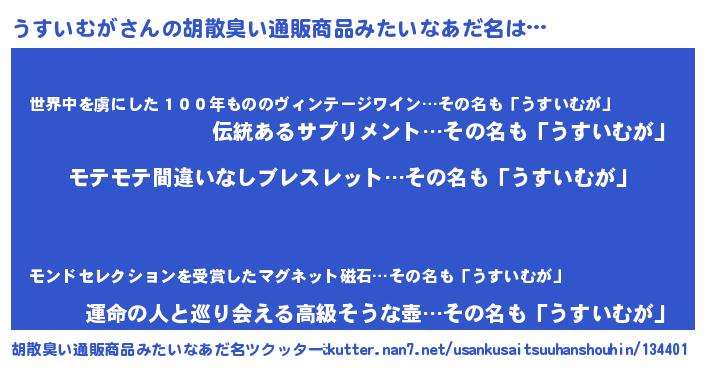 | 男性向けラノベタイトル風あだ名 | 『ウスイムガアートオンライン』 |