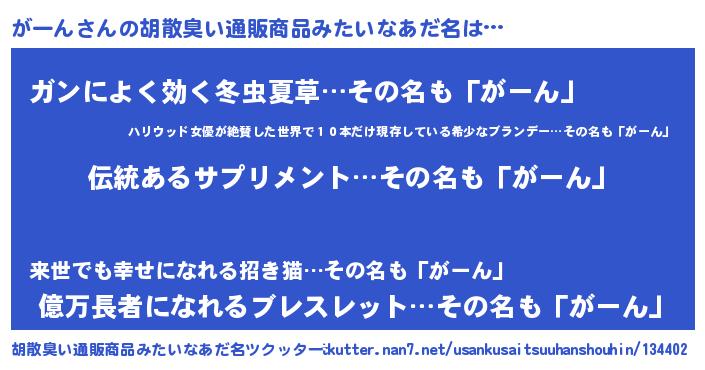 | 意味不明あだ名 | 『とにかく怪しいがーん』『自称がーん』 |