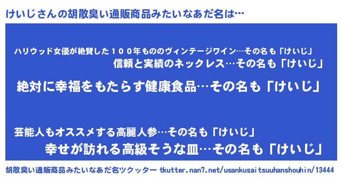 | 恥ずかしいあだ名 | 『けいちん』『けいっちょ』 |