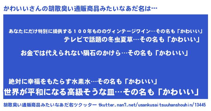 | ヘコむあだ名 | 『豆乳』『かわいい(遠い目)』 |