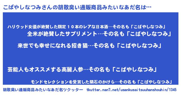 | 意味不明あだ名 | 『永久保存こばやしなつみ』 |