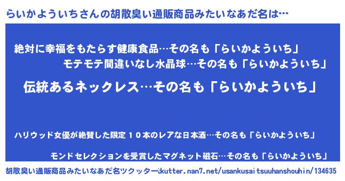 | ヘコむあだ名 | 『らいっ子』『らいかよういち(笑)』 |