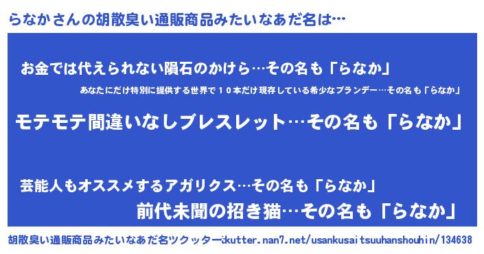 | ヘコむあだ名 | 『らなにー』『らなか(笑)』『豆乳』 |