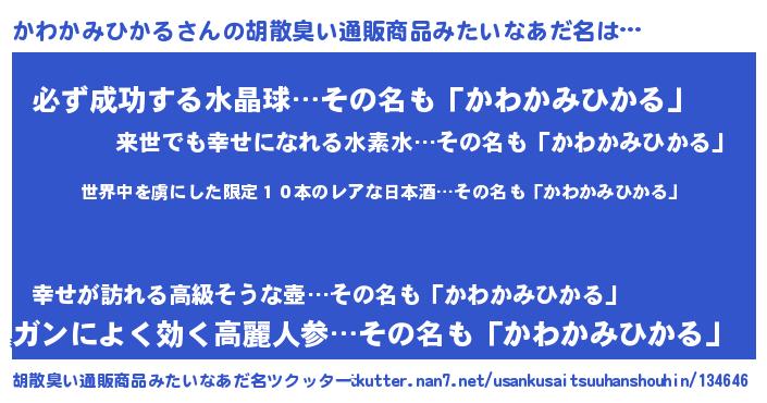 | 意味不明あだ名 | 『住所不定無職かわかみひかる(47歳)』 |