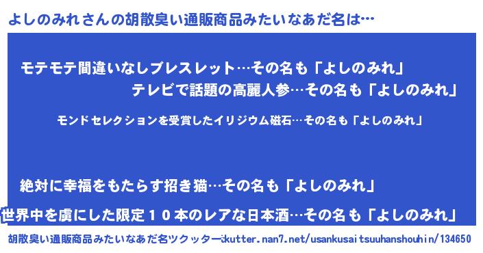 | ヘコむあだ名 | 『よしもー』『よしのみれ(小並感)』 |