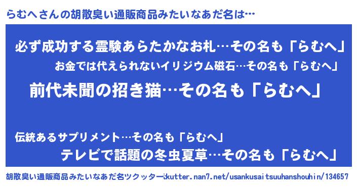| ヘコむあだ名 | 『らむへ(小並感)』『らむっふぃ~』 |