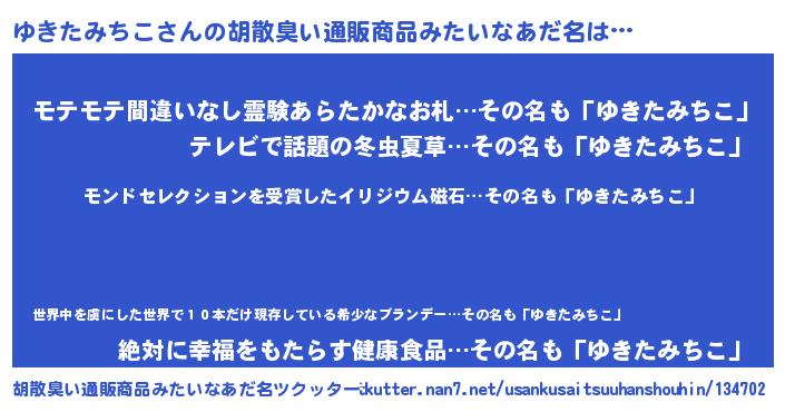 | ヘコむあだ名 | 『ゆきもー』『ゆきたみちこ(苦笑)』 |