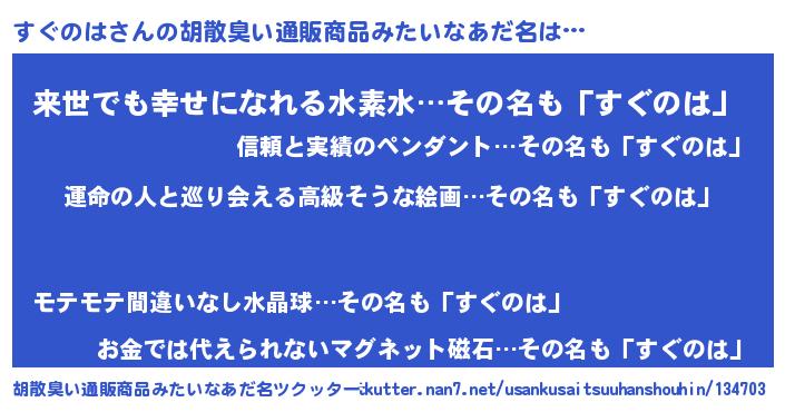 | 意味不明あだ名 | 『ニラ科すぐのは属』『永久保存すぐのは』 |