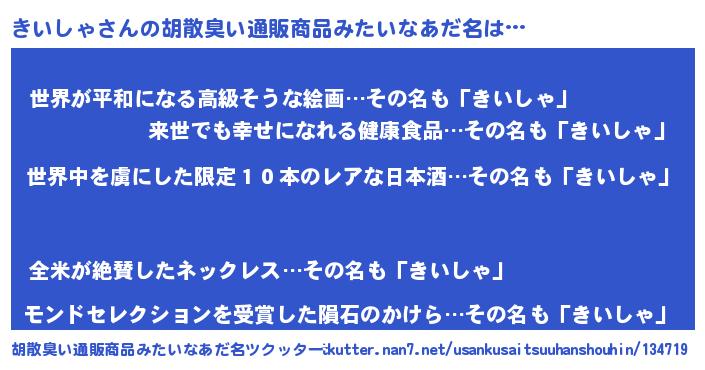 | 意味不明あだ名 | 『住所不定無職きいしゃ(65歳)』 |