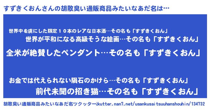 | ヘコむあだ名 | 『すずぷりん』『すずきくおん(爆)』 |