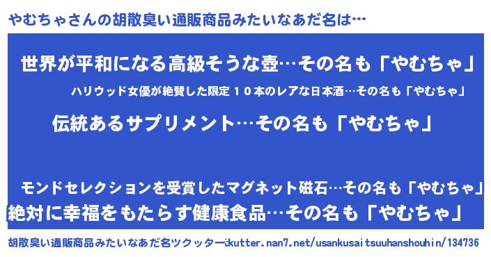やむちゃさんの胡散臭い通販商品みたいなあだ名をツクッター!