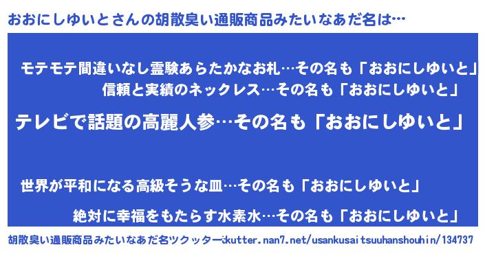| ヘコむあだ名 | 『おおにー』『おおにしゆいと(笑)』 |