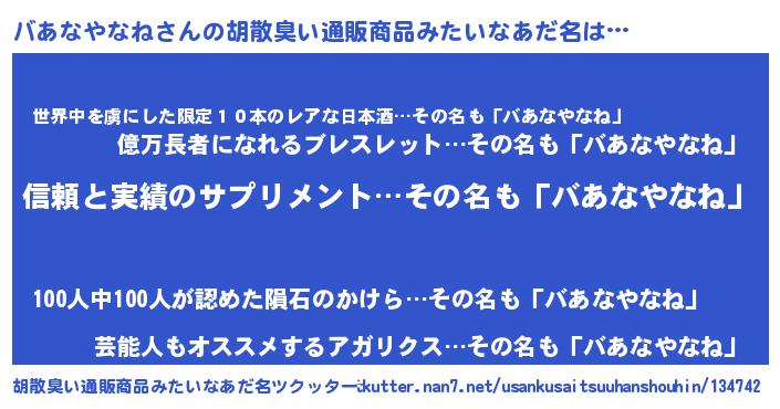 | 意味不明あだ名 | 『とにかく怪しいバあなやなね』 |