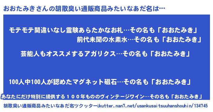 | 男性向けラノベタイトル風あだ名 | 『Re:おおたみきから始める異世界生活』 |