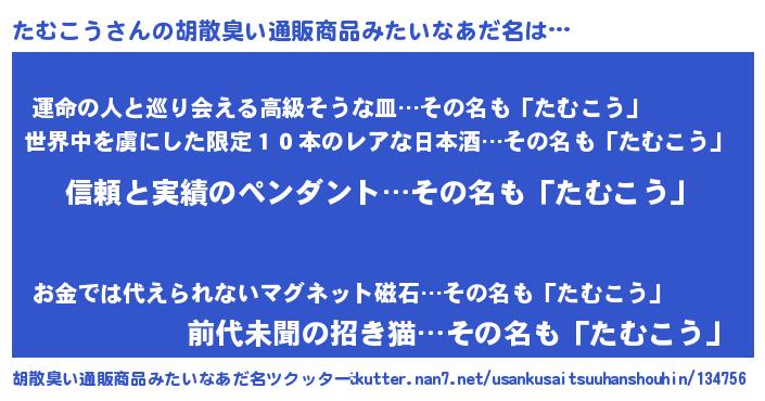 | 意味不明あだ名 | 『とにかく怪しいたむこう』 |