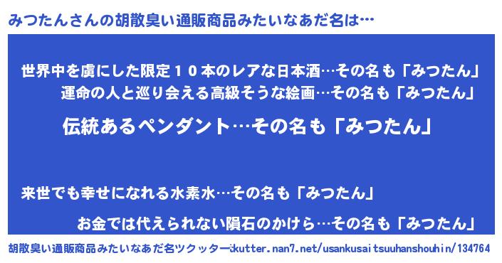 | 意味不明あだ名 | 『とにかく怪しいみつたん』 |