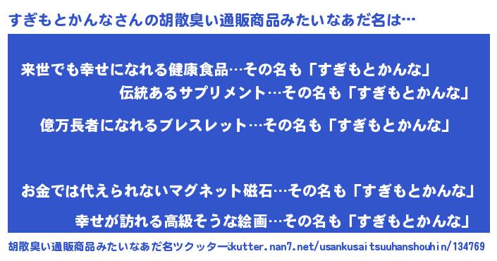 | ヘコむあだ名 | 『すぎふぇ~』『すぎもとかんな(笑)』 |
