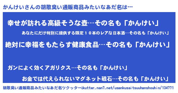 | 恥ずかしいあだ名 | 『かんちん』『かんっちょ』 |