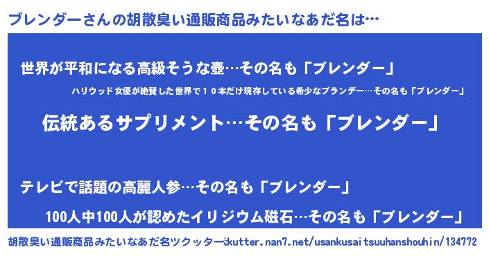 | 意味不明あだ名 | 『とにかく怪しいブレンダー』 |