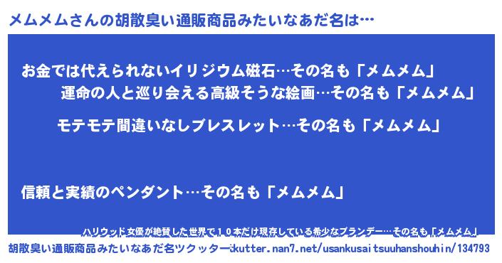 | ヒーロー風カッコイイあだ名 | 『スーパーメムメム』『愛の使者メムメム』 |