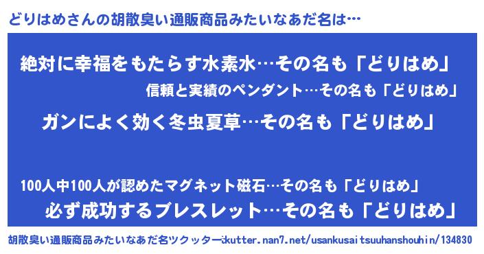 | ヘコむあだ名 | 『どりはめ(遠い目)』『どりにー』 |