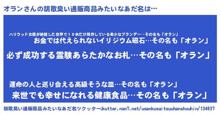 | ヒーロー風カッコイイあだ名 | 『スーパーオラン』『仮面オラダー』 |