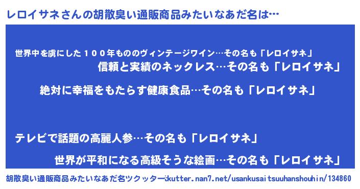 | 男性向けラノベタイトル風あだ名 | 『レロイサネという概念が存在しない退屈な世界 』 |
