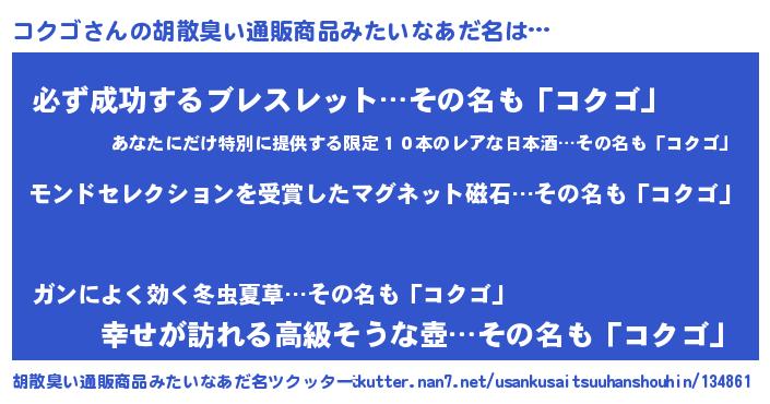 | ポケモン風あだ名 | 『コックウザ』『コクチュウ』 |