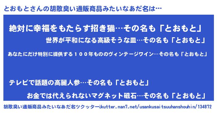 | 意味不明あだ名 | 『住所不定無職とおもと(13歳)』 |