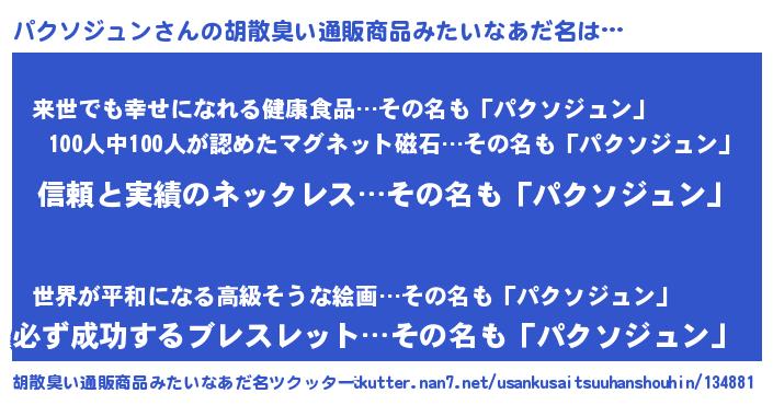 | 男性向けラノベタイトル風あだ名 | 『ダンジョンにパクソジュンを求めるのは間違っているだろうか』 |