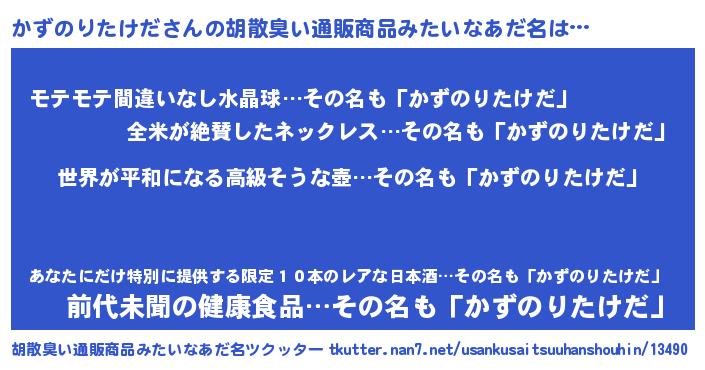 | 意味不明あだ名 | 『かずのりたけだフォーエバー』 |