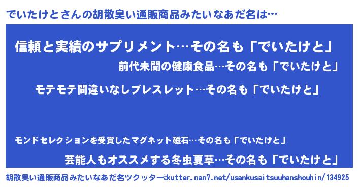 | 意味不明あだ名 | 『ペロリンでいたけと』『自称でいたけと』 |